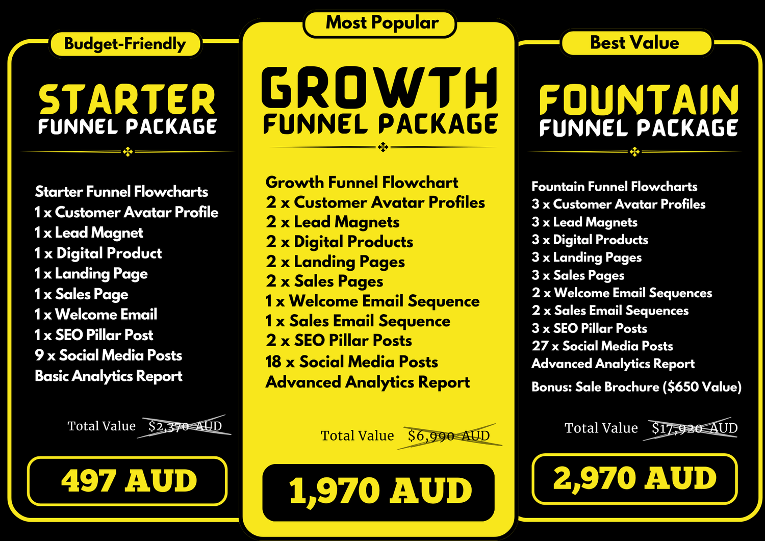 Break free from being a wage slave once and for all and take your first step towards financial freedom with our Sales Funnel Packages